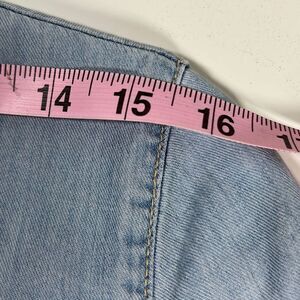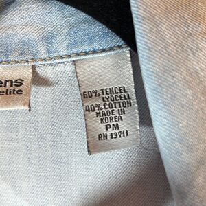 Valerie Steven’s 3/4 Sleeve Button Up Blue Jean Shirt. Light Wash. Size PM. This is a really cute blue Jean shirt. It is in good pre-owned condition. The sleeves can roll up and button making them almost short sleeve.