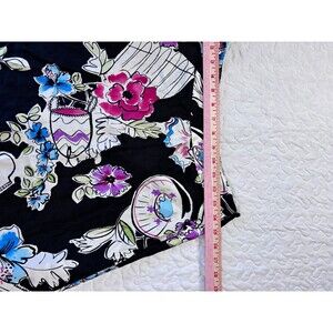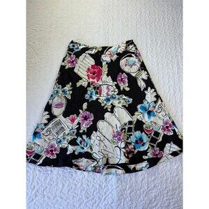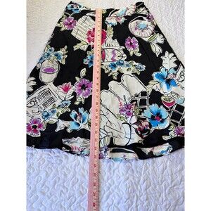 Valerie Stevens Black Floral Print Flowy A-Line Skirt 100% Silk size 4