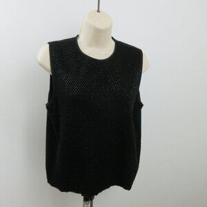 Valerie Stevens Black Top Size Medium Beaded 100% Merino Wool Sleeveless Shell