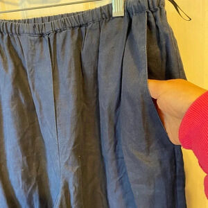 Valerie Stevens Blue Linen Casual Pull on Pants Women PM Pockets Elastic Waist