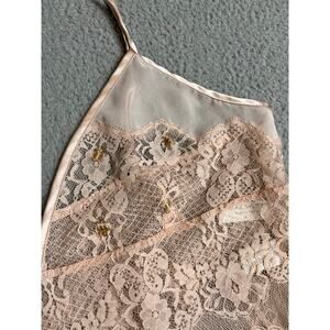 Valerie Stevens Cami Tank Top Large Sheer Lace Gold Sequin Pink Coquette Y2K