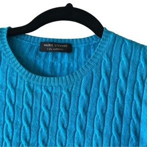 Valerie Stevens Cashmere Pullover Sweater Women XS Turquoise Cable Knit