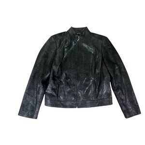 Valerie Stevens Collarless Woman’s Size L Black 100% Leather Print Zip Jacket