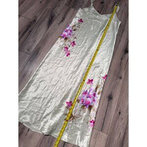 Valerie Stevens Intimates Floral Satin Slip Dress Lt Green Pink Orchid Print Max