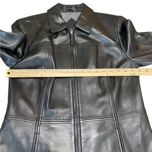 Super soft leather with zipper front. Pockets in front. Wear with jeans or anything. No stains or flaws.