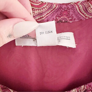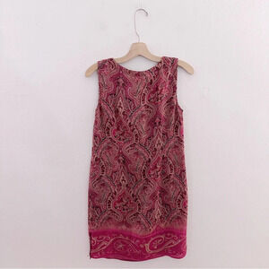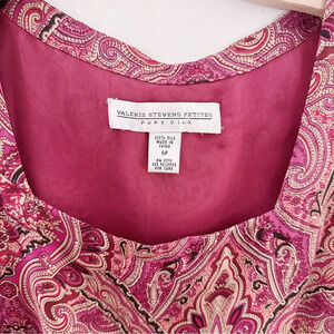 Valerie Stevens Petites Pure Silk Y2K Bohemian Paisley Shift Dress Magenta