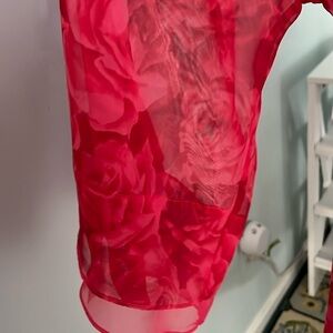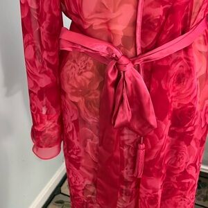 Here is a Valerie Stevens Pink Floral Rose Kimono Sytle Sheer Wrap Robe in EUC, size large