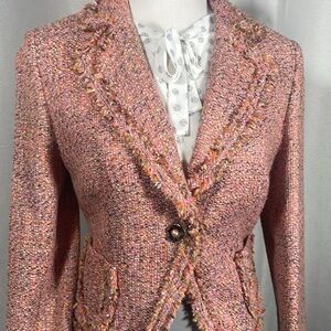 Valerie Stevens Pink Tweed Jacket flower jeweled button