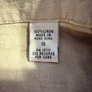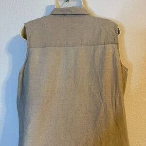 Valerie Stevens Pure Linen Button-Down Sleeveless Lagen Look Shirt Dress Size 16