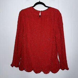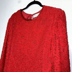 Valerie Stevens Pure Silk Vintage Women’s Heavy Beaded Top Holiday Party Red 14