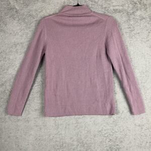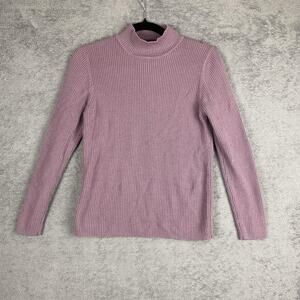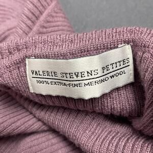 Valerie Stevens Sweater Womens Petite Medium Purple Merino Wool Ribbed Mock Neck Knit