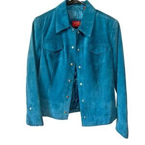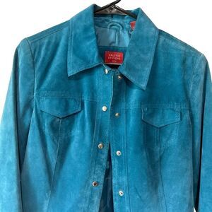 Valerie Stevens Teal Turquoise Blue Suede Jacket, Petite Medium