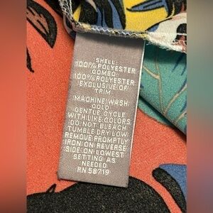 The regular fit blouse comes in women's size small and is machine washable. The colorful and casual blouse is made of a polyester blend material and was made in Indonesia. The Valerie Stevens blouse is perfect for those who love colorful and fun tops without talking about the condition of the pre-owned garment.
