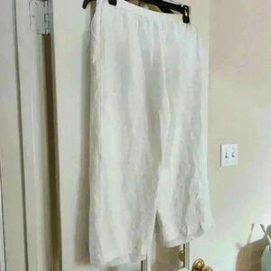 Valerie Stevens White Linen Blend Wide Leg Casual Comfy Cozy Crop Pants Medium