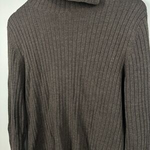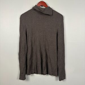 Valerie Stevens Womens Large Merino Wool Brown Ribbed Knit Turtleneck Sweater