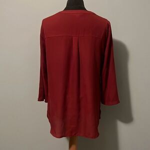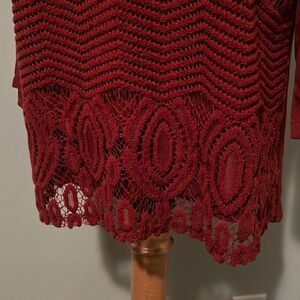 Valerie Stevens Women's Red Split Neck Long Sleeve Lace Top Size Small