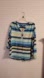 Stylish women's top featuring a vibrant blue and tan striped pattern. Perfect for casual outings or a day at the office. Long Sleeved but can be converted to a shorter sleeve.