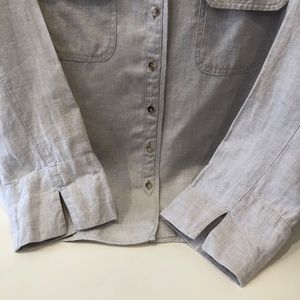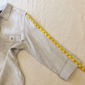 Preowned and in good condition. A few spots (see pic) where the natural flaws for the linen material