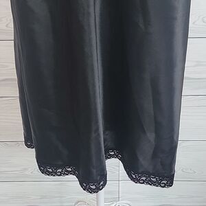 Black satin chemise with lace by Valerie Stevens in great pre-owned condition.