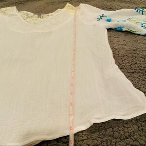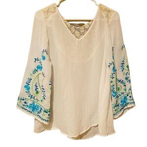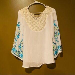 Valerie Stevens Embroidered Batwing Top Size Large Lace Back