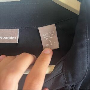 Valerie black button up pleated blouse size small 100% silk