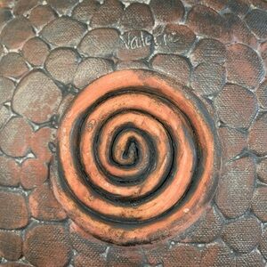 Valerie red pebble style ceramic dish tray @ 6”. Coiled foot. Perfect to adorn the coffee table or to use for keys!
