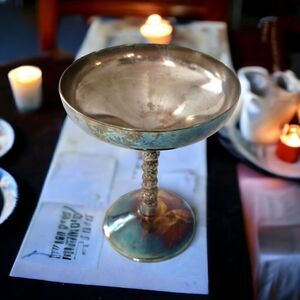 Valero Silver Plate Champagne Goblet Sherbet Dish Grapevine Stem PATINA Vintage.