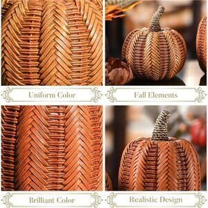 🧿【Rustic Farmhouse Style】The rustic and lovely style of these sweet resin artificial rattan pumpkins will add country chic to your home and become an eye-catching centerpiece, They can add more fun and vitality to your autumn home decor.