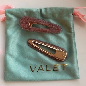 Brand New Never Used Valet Studio Kelly Clips in Pink & Blue Glitter with roe gold