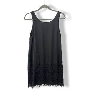 Valette Black Satin Lace Trim Scoop Neck Slip Dress