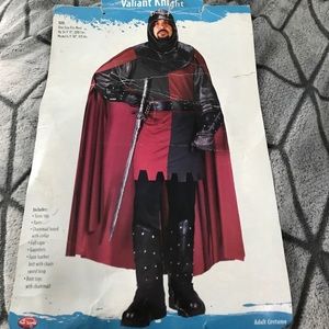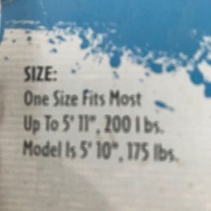 One size fits most - includes - Shirt, Pants, cape, faux leather belt. Packaging is ripping but costume in good condition!