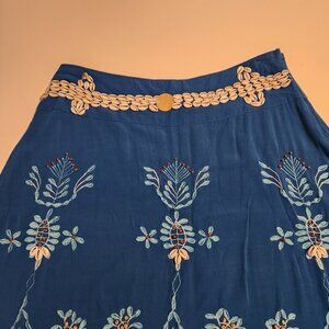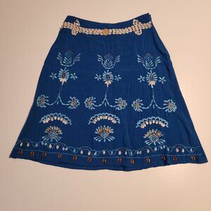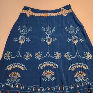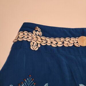 Valija Gitana Skirt Linen Blue Seashells Embroidered Unique Boho Womens Small