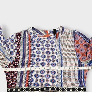 Valija Medallion Print Patchwork Flare Sleeve Mini Dress Medium Multicolor Boho