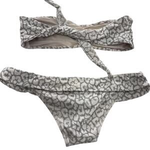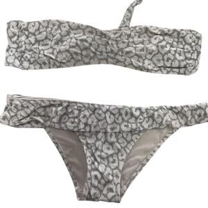 Valimare Bikini Swimsuit Womens Medium Gray Salinas Animal Bandeau Two Piece