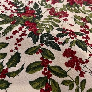 Vallesusa Tablecloth 100% Cotton Holly Berries Christmas round 66” Made in Italy