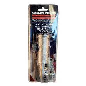 This Valley Forge 1" cast aluminum adjustable flag bracket provides versatility and robustness for mounting flag poles. Designed to support wood and aluminum poles, this bracket adjusts to 13 distinct positions for optimal display flexibility. Its durable cast aluminum construction ensures long-lasting performance in all weather conditions, while its multi-position capability adapts to different angles for personalized flag presentation. Ideal for residential and commercial applications, this bracket is a reliable choice for enhancing flag display aesthetics.