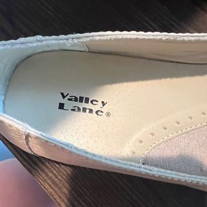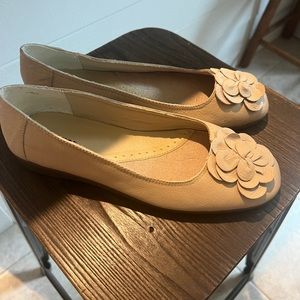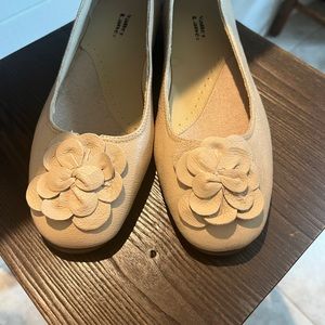 These are a neutral color, tan with a flower tassel on the toe. Size 9.5
