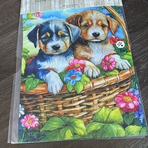 Valley View Garden Flags, 2 pack, Gnome of the Brave & puppies in flower basket