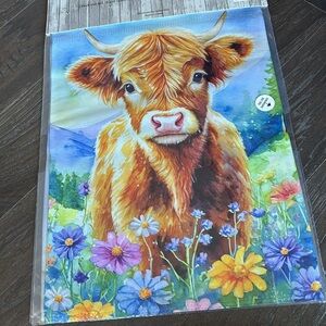 Valley View Welcome Flags,2 pack,Kick your boots off & stay +Cow in flower field