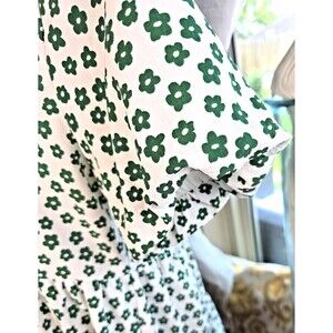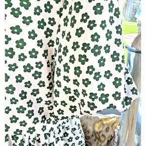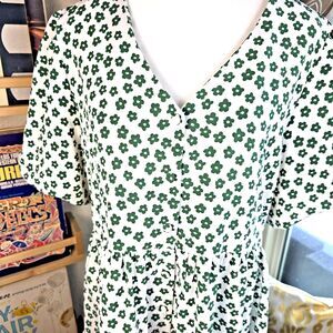 Valleygirl Dress Womens 14 White Green Floral Tiered Babydoll Short Sleeve Boho