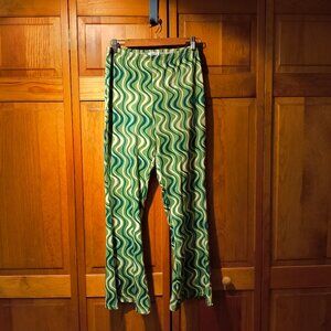 Valleygirl Groovy Green Flare High Waisted Stretchy Pants Women's Size Large