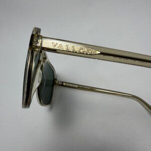 Bold Vallon H20 C4 sunglasses featuring a striking gold metal aviator frame with a retro-inspired double bridge design. Fitted with polarized green sun lenses that provide strong outdoor protection. Frames are in very good condition, and lenses have some surface scratching but remain fully wearable. No case included.