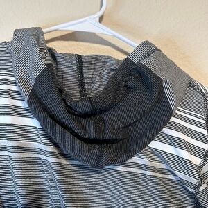 This long sleeve tee showcases a stylish ombré stripe design, transitioning from light to dark gray. Crafted for comfort and versatility, it's perfect for casual outings or relaxed days at home.