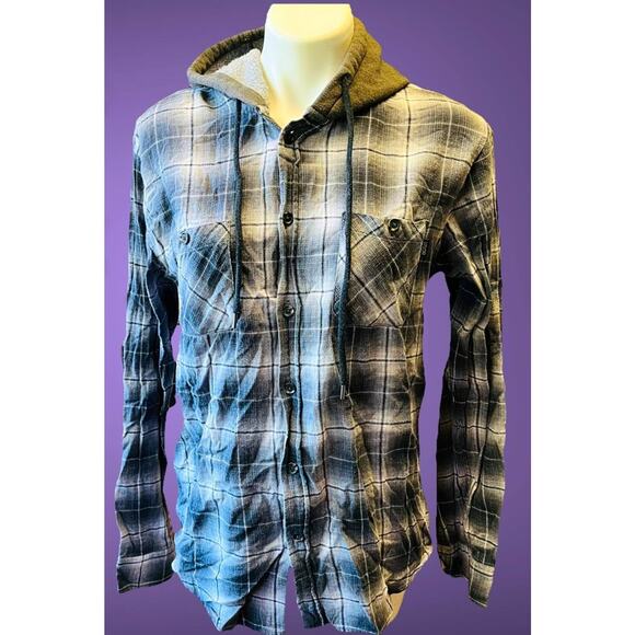 Title: Valor Collective Shirt Men's Large Hooded Plaid Button Down Western Farm Outdoor