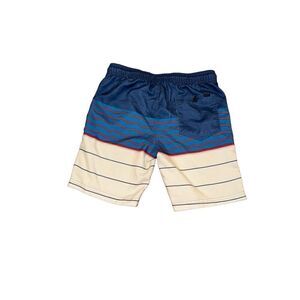 Great condition! Front pockets. One button close back pocket. Blue top section teal with red/maroon zig zag pattern then off white with blue stripes. Size large. Fabric marks on back but only superficial no damage to fabric is apparent.