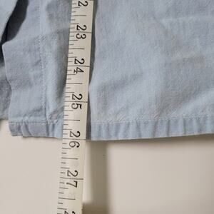 Valorie's Folk Art Applique Christmas Button Up Shirt - Size Medium - 100% Cotton - Santas with christmas trees - shirt says "believe in the magic" - hidden buttons up front - some staining on front and sleeves (see last 2 photos) - great pre-owned condition