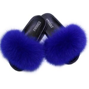 Valpeak Slippers Slides Women Open Toe Fuzzy Girls Fluffy ,Women, Blue, 8-9
