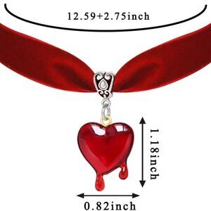 Features: This Y2K-inspired choker features a blood droplet-shaped heart pendant that looks just like real blood. Made of super-soft velvet and resin, it's lightweight and comfy, even after hours of wear. The lobster clasp makes it easy to adjust for the perfect fit.