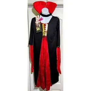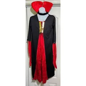 Vampire Costume Girls 10-12 Renaissance Red Velvet Dress Collar Fangs Rubies Kid