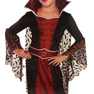 Vampire Wicked Queen Costume Child XL 14-16 BAT WING Sleeves Velvet Halloween